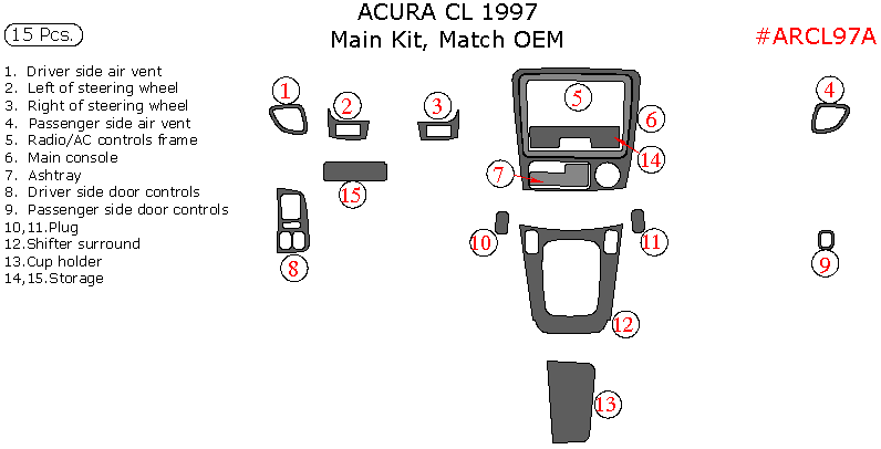 Acura CL 1997, Main Interior Kit, 15 Pcs., Match OEM