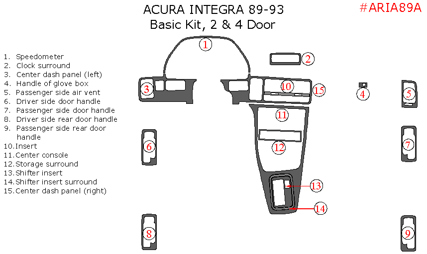 Acura Integra 1989, 1990, 1991, 1992, 1993, 2 & 4 Door, Basic Interior Kit,15 Pcs.