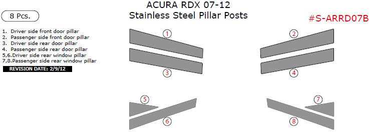 We offer a wide variety of colors and materials of Acura RDX 2007, 2008, 2009, 2010, 2011, 2012, Stainless Steel Pillar Posts, 8 Pcs. Choose your favourite option and place an order.