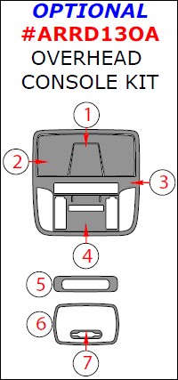 Acura RDX 2013, 2014, 2015, 2016, 2017, 2018, Optional Overhead Console Interior Kit, 7 Pcs.