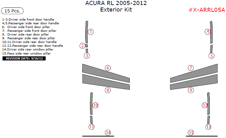 Acura RL 2005, 2006, 2007, 2008, 2009, 2010, 2011, 2012, Exterior Kit, 15 Pcs.
