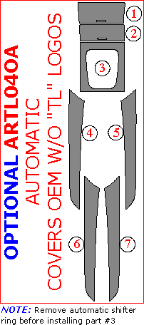 Acura TL 2004, 2005, 2006, 2007, 2008, Automatic, Optional Interior Kit, Covers OEM, 7 Pcs.