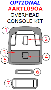 Acura TL 2009, 2010, 2011, 2012, 2013, 2014, Optional Overhead Console Interior Kit, 7 Pcs.
