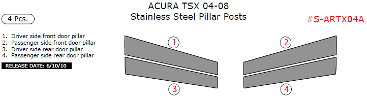 Acura TSX 2004, 2005, 2006, 2007, 2008, Stainless Steel Pillar Posts, 4 Pcs.