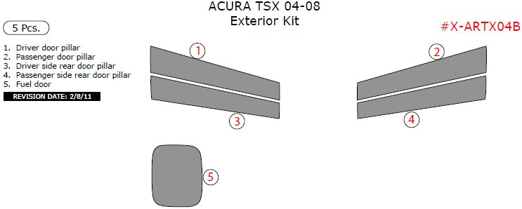 Acura TSX 2004, 2005, 2006, 2007, 2008, Exterior Kit, 5 Pcs.