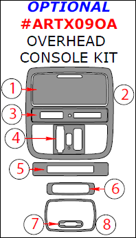 Acura TSX 2009, 2010, 2011, 2012, 2013, 2014, Optional Overhead Console Interior Kit, 8 Pcs.