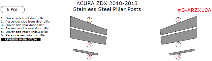 We offer a wide variety of colors and materials of Acura ZDX 2010, 2011, 2012, 2013, Stainless Steel Pillar Posts, 6 Pcs. Choose your favourite option and place an order.