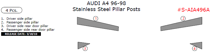 Audi A4 1996, 1997, 1998, Stainless Steel Pillar Posts, 4 Pcs.