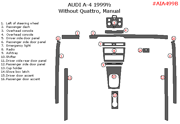 Audi A4 1999.5, Interior Kit, Manual, Without Quattro, 16 Pcs.