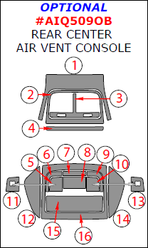 Audi Q5 2009, 2010, 2011, 2012, 2013, 2014, 2015, 2016, 2017, Optional Rear Center Air Vent Console Interior Kit, 16 Pcs.