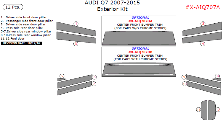 Audi Q7 2007, 2008, 2009, 2010, 2011, 2012, 2013, 2014, 2015, Exterior Kit, 12 Pcs.