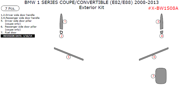 BMW 1 Series 2008, 2009, 2010, 2011, 2012, 2013, Exterior Kit (Coupe/Convertible), 7 Pcs.