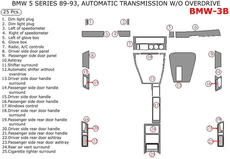 BMW 5 Series 1989, 1990, 1991, 1992, 1993, Interior Kit, Automatic Transmission Without Overdrive, 25 Pcs.