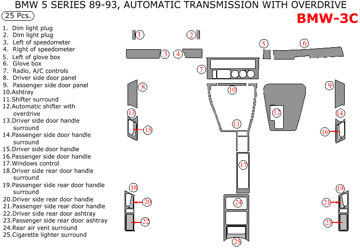 BMW 5 Series 1989, 1990, 1991, 1992, 1993, Interior Kit, Automatic Transmission With Overdrive, 25 Pcs.