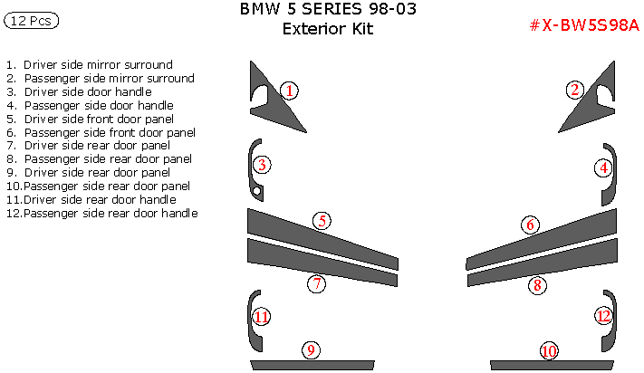BMW 5 Series 1998, 1999, 2000, 2001, 2002, 2003, Exterior Trim Kit, 12 Pcs.