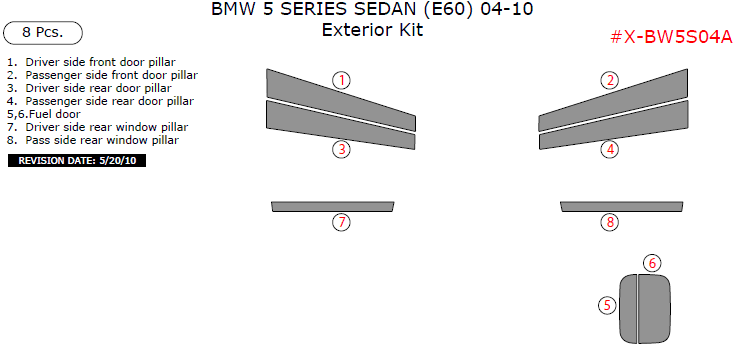 BMW 5 Series 2004, 2005, 2006, 2007, 2008, 2009, 2010, Exterior Kit (Sedan Only), 8 Pcs.