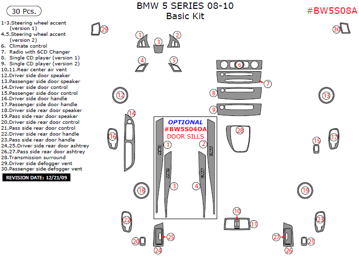 BMW 5 Series 2008, 2009, 2010, Basic Interior Kit, 30 Pcs.