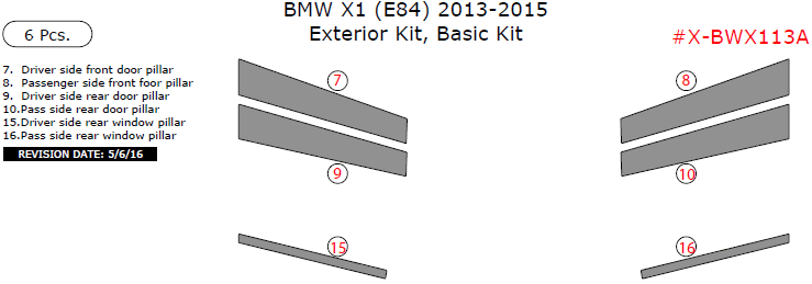 BMW X1 (E84) 2013, 2014, 2015, Stainless Steel Pillar Posts, 6 Pcs.