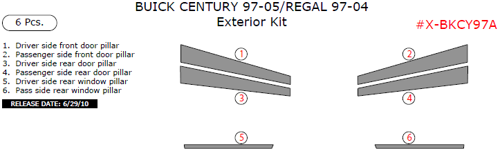 Buick Century 1997, 1998, 1999, 2000, 2001, 2002, 2003, 2004, 2005, Buick Regal 1997-2004, Exterior Kit, 6 Pcs.