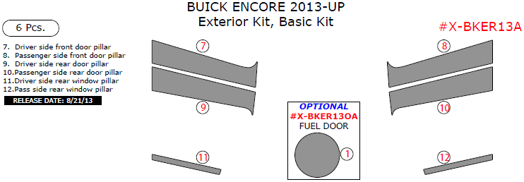 Buick Encore 2013, 2014, 2015, 2017, Basic Exterior Kit, 6 Pcs.
