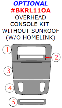 Buick Regal 2011, 2012, 2013, Optional Overhead Console Interior Kit Without Sunroof (Without Homelink), 5 Pcs.