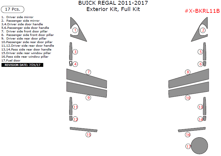 Buick Regal 2011, 2012, 2013, 2014, 2015, 2016, 2017, Exterior Kit, Full Interior Kit, 17 Pcs.