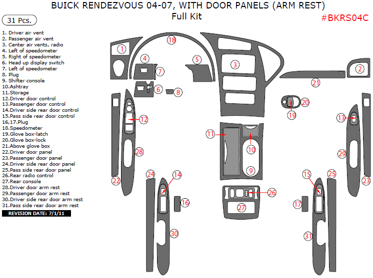 Buick Rendezvous 2004, 2005, 2006, 2007, Full Interior Kit, With Door Panels (Arm Rest), 31 Pcs.