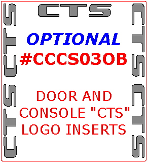 We offer a wide variety of colors and materials of Cadillac CTS 2004-2005, Interior Kit, Optional Door and Console "CTS" Logo Insert, 15 Pcs. Choose your favourite option and place an order.