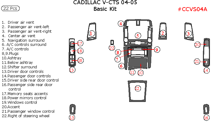 Cadillac CTS/ V-CTS 2004-2005, Basic Interior Kit, 22 Pcs.