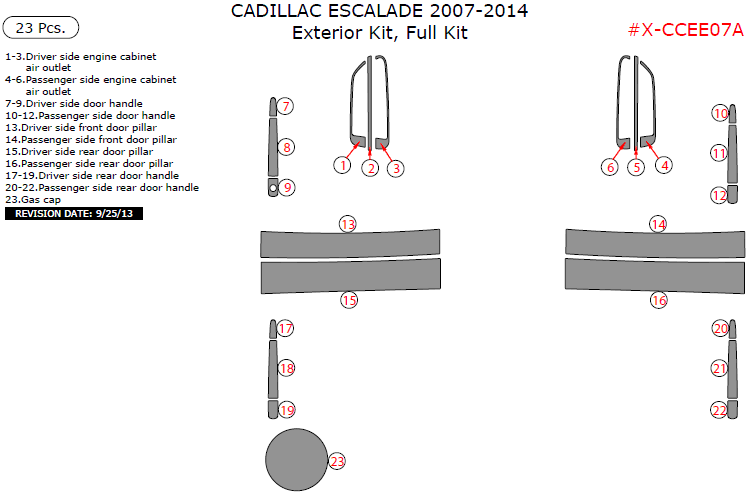 Cadillac Escalade 2007, 2008, 2009, 2010, 2011, 2012, 2013, 2014, Exterior Kit, Full Interior Kit, 23 Pcs.