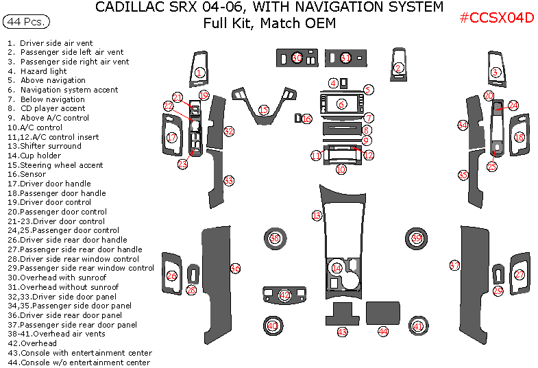 Cadillac SRX 2004, 2005, 2006, Full Interior Kit, With Navigation System, 44 Pcs., Match OEM