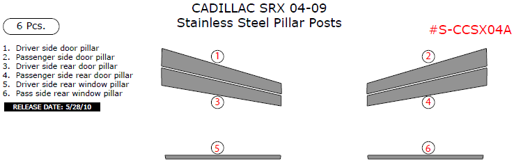 We offer a wide variety of colors and materials of Cadillac SRX 2004, 2005, 2006, 2007, 2008, 2009, Stainless Steel Pillar Posts, 6 Pcs. Choose your favourite option and place an order.
