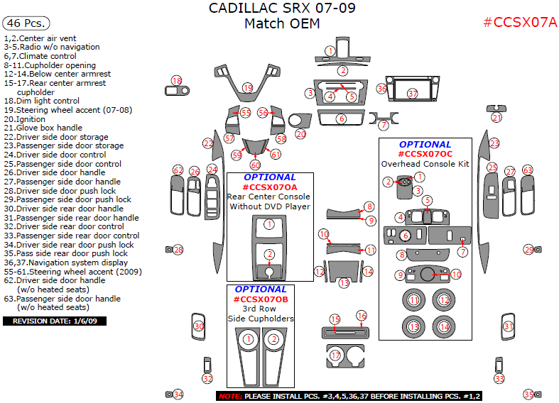 We offer a wide variety of colors and materials of Cadillac SRX 2007, 2008, 2009, Interior Kit, 46 Pcs., Match OEM. Choose your favourite option and place an order.