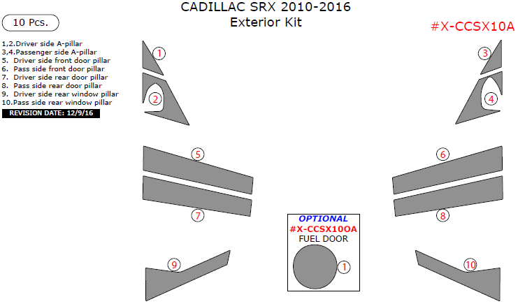 Cadillac SRX 2010, 2011, 2012, 2013, 2014, 2015, 2016, Exterior Kit, 10 Pcs.