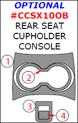 Cadillac SRX 2010, 2011, 2012, 2013, 2014, 2015, 2016, Optional Rear Seat Cupholder Console Interior Kit, 4 Pcs.