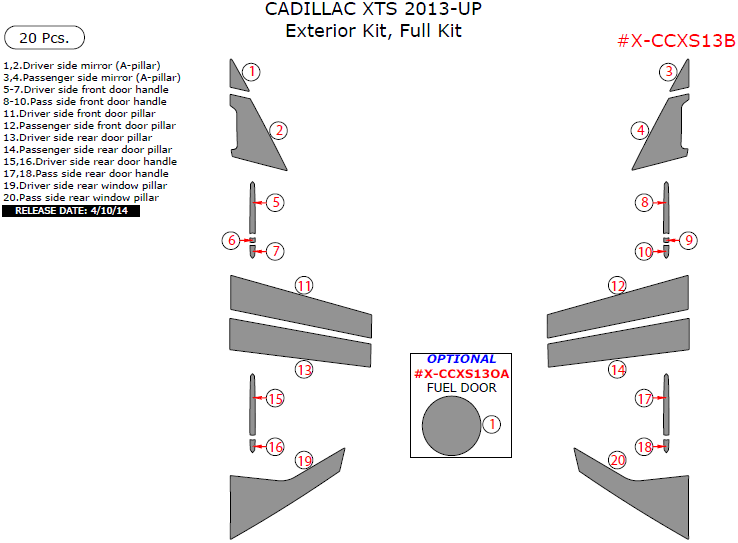 Cadillac XTS 2013, 2014, 2015, 2017, Exterior Kit, Full Interior Kit, 20 Pcs.