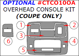 Chevrolet Camaro 2010, 2011, 2012, 2013, 2014, 2015, Optional Overhead Console Interior Kit (Coupe Only), 6 Pcs.