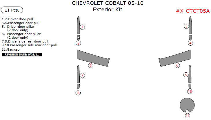 Chevrolet Cobalt 2005, 2006, 2007, 2008, 2009, 2010, Chevrolet Equinox 2005-2006, Exterior Kit, 11 Pcs.