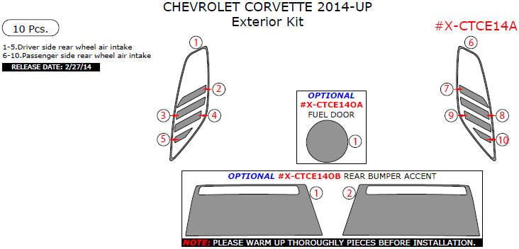 Chevrolet Corvette 2014, 2015, 2016, 2017, 2018, 2019 Exterior Kit, 10 Pcs.
