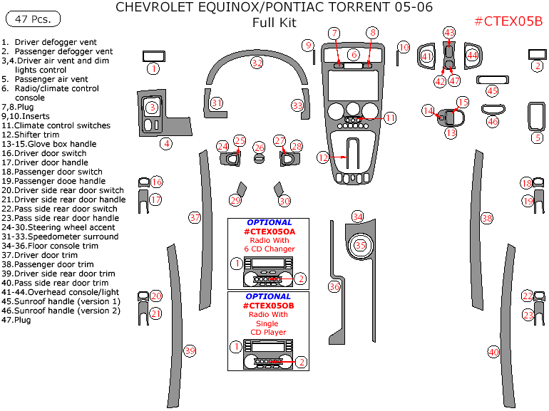 Chevrolet Equinox 2005-2006, Pontiac Torrent 2005-2006, Full Interior Kit, 47 Pcs.