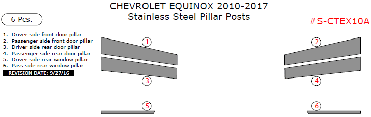 We offer a wide variety of colors and materials of Chevrolet Equinox 2010, 2011, 2012, 2013, 2014, 2015, 2016, 2017, Stainless Steel Pillar Posts, 6 Pcs. Choose your favourite option and place an order.