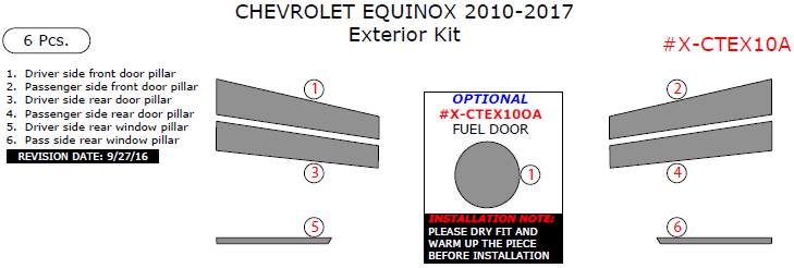 Chevrolet Equinox 2010, 2011, 2012, 2013, 2014, 2015, 2016, 2017, Exterior Kit, 6 Pcs.