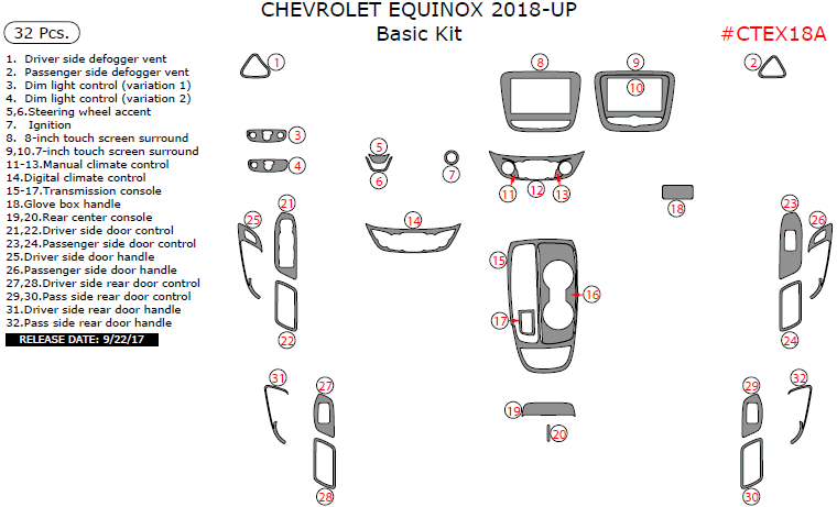 Chevrolet Equinox 2018-2025, Basic Interior Kit, 32 Pcs.