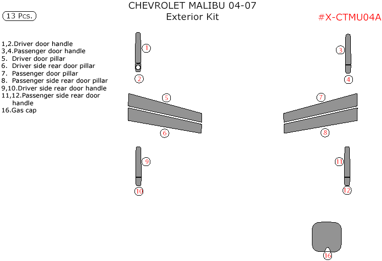 Chevrolet Malibu 2004, 2005, 2006, 2007, Chevrolet Malibu, Exterior Kit, 13 Pcs.