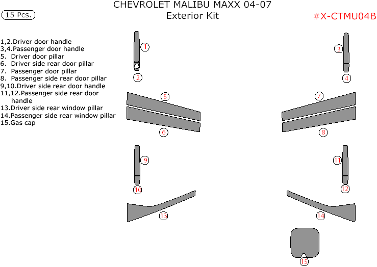 Chevrolet Malibu 2004, 2005, 2006, 2007, Chevrolet Malibu Maxx, Exterior Kit, 15 Pcs.
