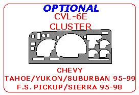 We offer a wide variety of colors and materials of Chevrolet Silverado /GMC Sierra 1995, 1996, 1997, 1998, Chevrolet Suburban/Tahoe 1995, 1996, 1997, 1998, 1999, GMC Yukon 1995, 1996, 1997, 1998, 1999, Interior Kit, Speedometer Cluster, 1 Pcs. Choose your favourite option and place an order.