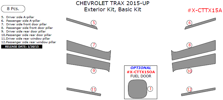 Chevrolet Trax 2015-2016, Basic Exterior Kit, 8 Pcs.