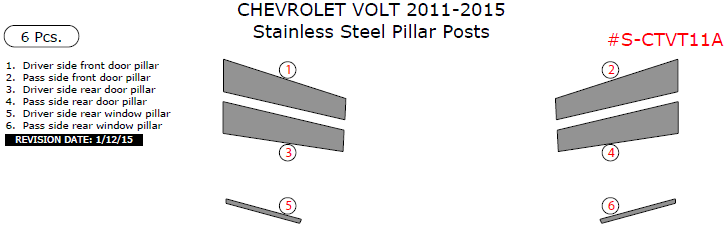 We offer a wide variety of colors and materials of Chevrolet Volt 2011, 2012, 2013, 2014, 2015, Stainless Steel Pillar Posts, 6 Pcs. Choose your favourite option and place an order.