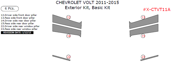 Chevrolet Volt 2011, 2012, 2013, 2014, 2015, Basic Exterior Kit, 6 Pcs.