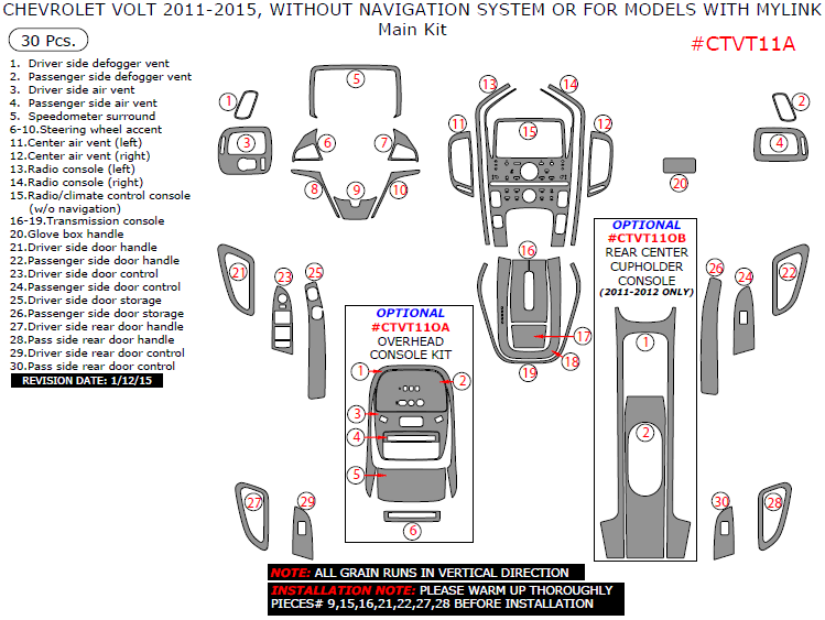 We offer a wide variety of colors and materials of Chevrolet Volt 2011, 2012, 2013, 2014, 2015, Without Navigation System Or For Models With MyLink, Main Interior Kit, 30 Pcs. Choose your favourite option and place an order.